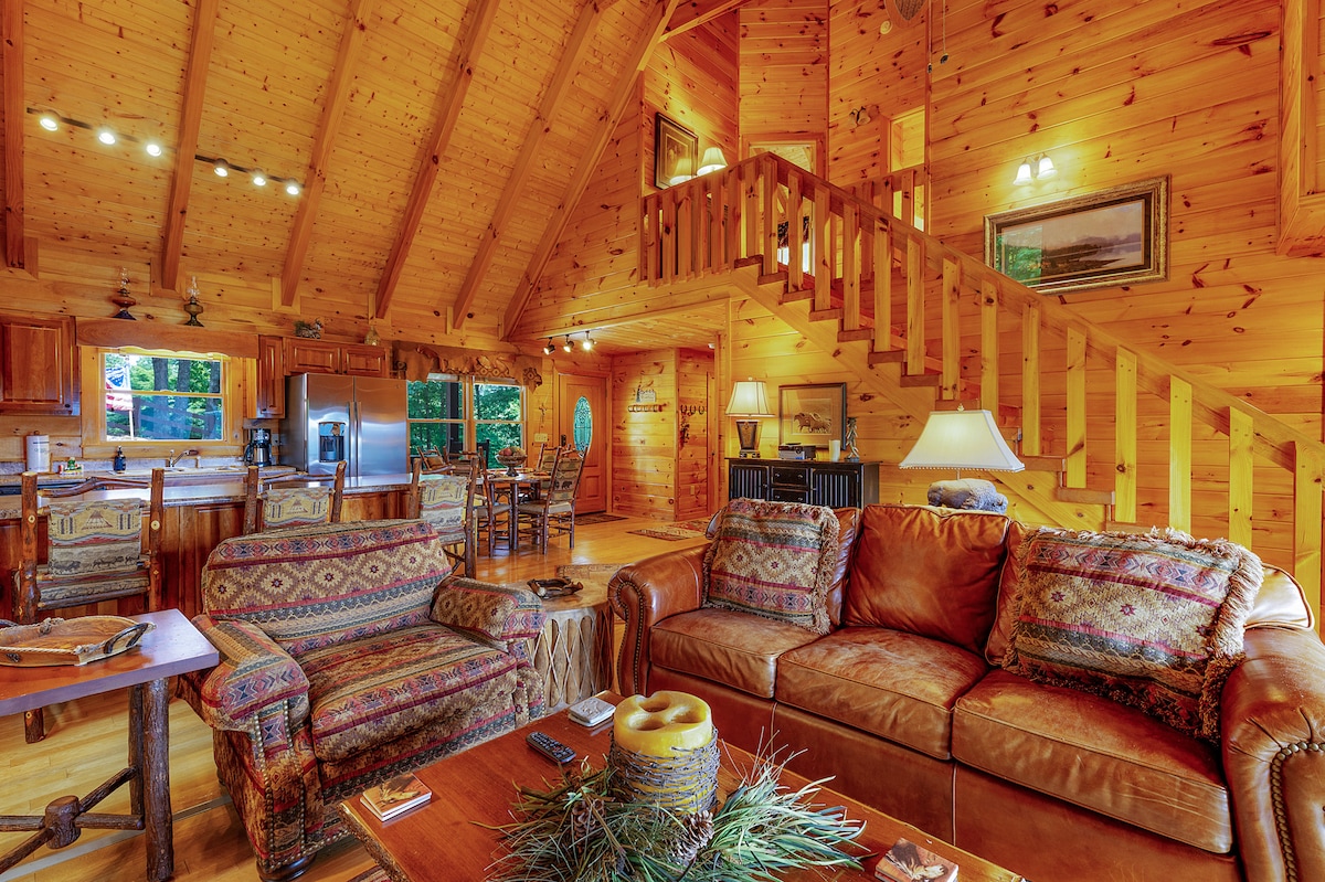 Fly till en Serene Lake View Cabin: Bekvämt Numb, Your Perfect Retreat. Njut av naturens skönhet och skapa oförglömliga minnen i vår stuga med sjöutsikt. Upplev de hisnande stunderna av soluppgång och solnedgång när du kopplar av på våra bekväma däck eller uteplatser och erbjuder fri utsikt över horisonten. Låt färgerna på himlen fascinera dig under dessa magiska stunder. Kliv in bekvämt Numb och fördjupa dig i lugn och ro. Vårt vardagsrum har en mysig