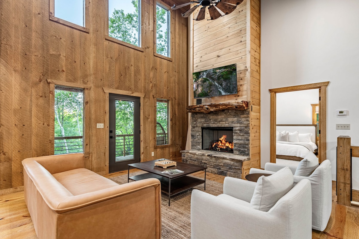 Skyline Sanctuary ligger ovanför Lake Chatuge och är en lyxig reträtt som är utformad för ren föryngring. Sjunk ner i bubbelpoolen under stjärnorna, varva ner i den nya bastun, välkomna soluppgången på däck eller samlas vid eldstaden. Denna tillflyktsort på bergstoppen är utformad för anslutning, klarhet och lugn och inspirerar dig att ladda om, utforska, skapa och verkligen andas. Låt bergen förhöja din vistelse.