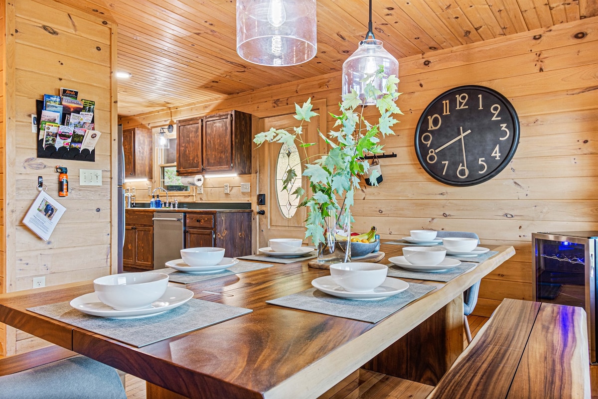 Camp Dry Branch är inte din typiska fjällstuga – det är en fristad av flott sofistikering, där inomhus- och utomhusliv existerar i sömlös harmoni. Tänk Soho House i bergen — (2) dekadenta king-sviter, (1) queen-svit, barnrum (2 tvillingar och 1 hel), plyschrockar, spa-liknande bad, cedersbastu, eld funktioner, svepande utsikt, bubbelpool, kockens kök, lek i trädgården och panoramiska däck. Minuter från sjön och DT, det är en chic men fridfull tillflyktsort som erbjuder återställande frid med en boujee twist