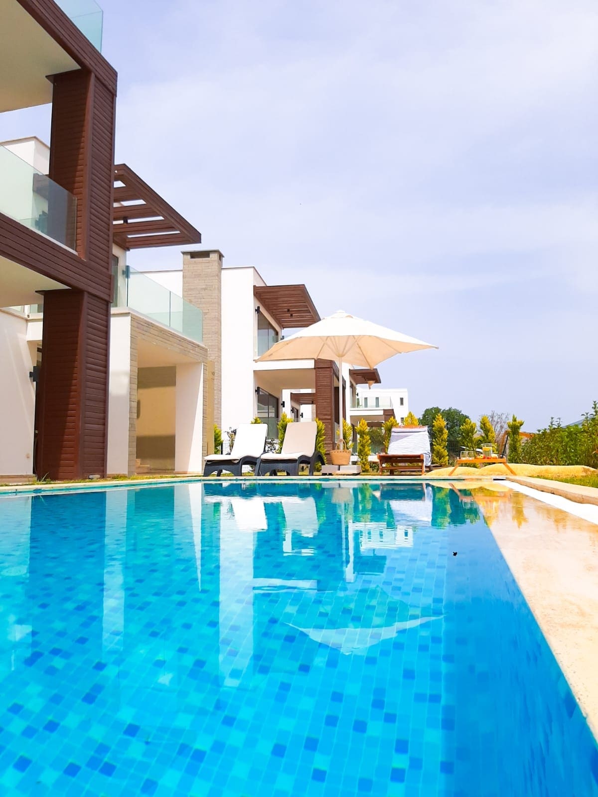 Lyxigt hus med egen pool, trädgård, i utkanten av Bitez s mandarin trädgårdar. Vi tror att du kommer att älska den smakfulla inredningen av 2-vånings, 5-rums, naturligt ljus villa med rymliga och högt tak rum och poolen med en bro. Villan ligger 5 minuters bilresa till Aktur Beaches och Bitez centrum, ligger också 11 minuters promenad till Bağarası Restaurant, en av våra personliga favoriter. Välkommen!