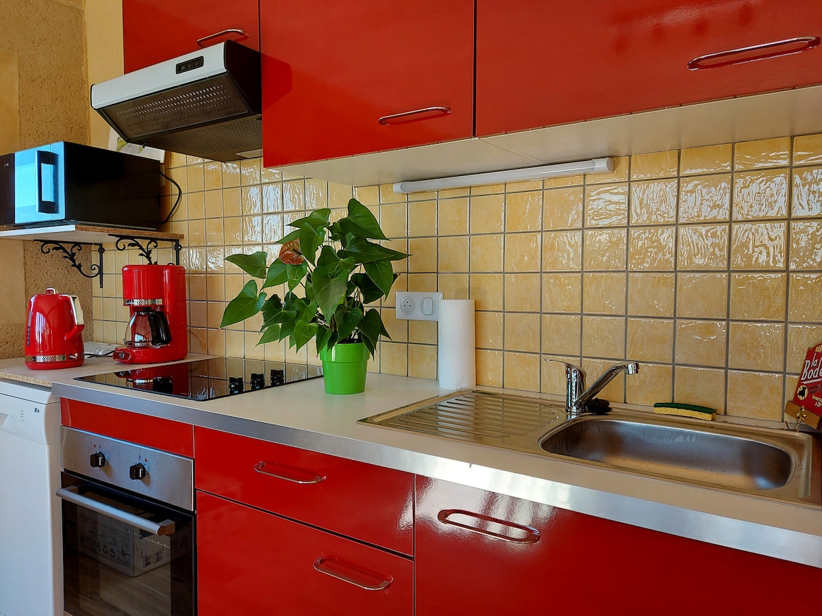 Stadshus i Gers med ett idealiskt läge i hjärtat av staden i en liten dynamisk by som också är en etappby. 50 m till fots från alla butiker. Fullt utrustat kök med matsal (ca 20 m2). Första våningen, 16 m2 vind, består av en bäddsoffa av hög kvalitet, ett första WC och en dusch. En extra säng finns också tillgänglig; en TV-vrå. Den andra våningen är ett sovrum med toalett, vattenpunkt och kontor. Mysig och trivsam atmosfär ...