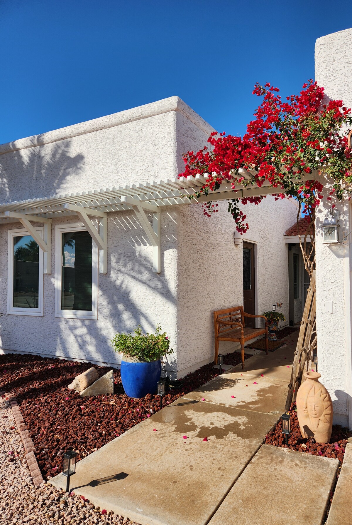 Vårt hus är en modern fastighet från mitten av århundradet som designades och byggdes 1970 av en Phoenix Wrightsian arkitekt och totalrenoverades 2015. Dess centrala läge är en perfekt miljö om du utforskar Phoenix för nöjes skull, besöker för ett evenemang eller tillbringar tid i stan på affärsresa. Håll utkik efter oss online: #VillaParadisoPhoenix Njut av köksutrymmet och ta för dig av frukost. Din favorit ångad kaffedryck, varmt te och kontinental frukost (yoghurt, juice, croissanter, frukt, osv.) ingår i ditt boende. Njut av alla avbildade utrymmen inomhus och utomhus. Ditt rum och badrum är privat med en dubbelsäng, premium sängkläder, en garderob, Wi-Fi, Netflix, ett skrivbord och mycket mer. Du kan njuta av maximal integritet och komma och gå igenom den oberoende ingången. Alternativt är du välkommen att använda ytterdörren, köket och kylskåpet, fram- och bakgårdarna och alla andra bostadsutrymmen. Ytterdörren är utrustad med smart lås som du kan öppna med din smartphone; din rums oberoende ingång har en traditionell nyckel. Vi bor i huset och njuter av vilken nivå av interaktion våra gäster väljer. Vänligen kontakta oss via appen för snabbast svar. Boendet ligger i ett lugnt, tryggt och väletablerat bostadsområde på gränsen till Phoenix och Scottsdale. De flesta hus är stora och inkluderar pensionat och simbassänger, och många av grannarna som bor runt omkring oss har bott här i årtionden. Beroende på vistelsens längd och de platser du tänker besöka kan en hyrbil eller Uber-tjänst vara de bästa valen. Tveka inte att fråga oss. Smartphone-navigering kommer att guida dig till vår adress enkelt och med noggrannhet. Vi är mindre än 10 minuter från flygplatsen. Vårt hus är husdjursfritt och vi är icke-rökare.