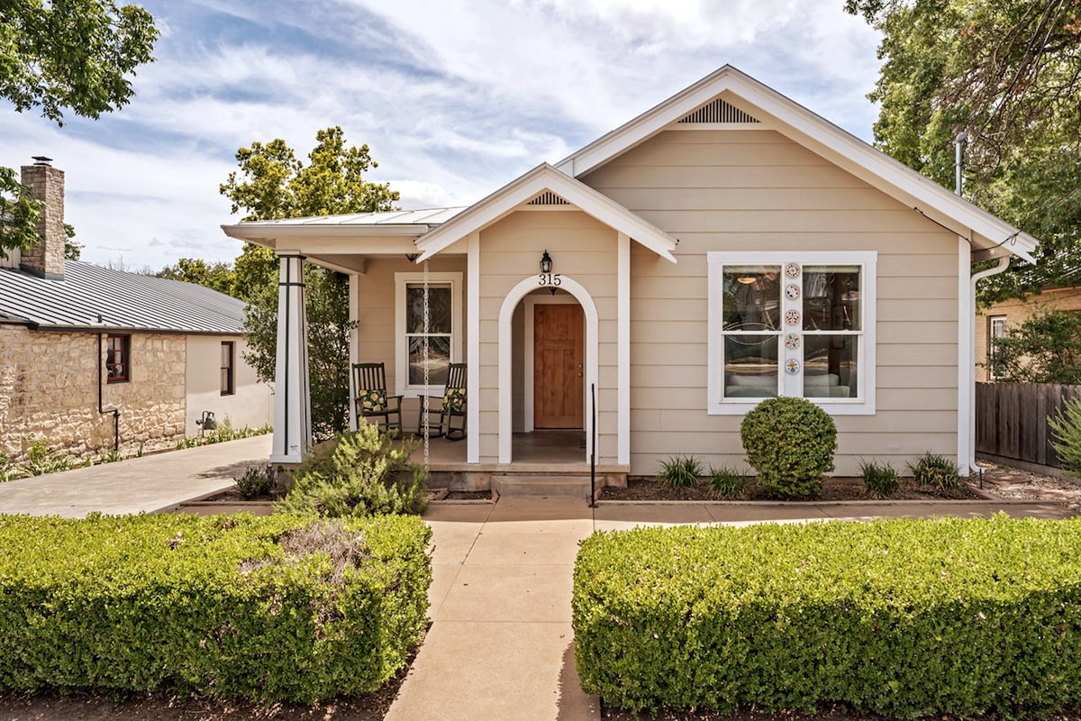 Fly till Laurel Haus, ett vackert renoverat semesterboende bara två kvarter från Main Street i Fredericksburg, Texas. Detta renoverade hus erbjuder modern lyx och charm. Det rymliga boendet rymmer 6 i 2 sovrum + ett loft — två king-sviter och två tvillingar — och har 2 fulla badrum. Koppla av på uteplatsen, samlas runt eldstaden eller varva ner efter att ha utforskat Fredericksburgs vingårdar, butiker och Texas Hill Country. Boka nu för en minnesvärd tillflyktsort i vinlandet i Fredericksburg!