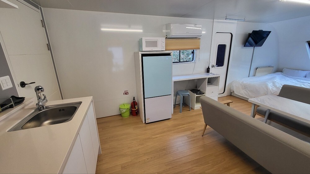 ※ Vintersäsong: Sen in-/utcheckning tillgänglig (Incheckning efter 18:00, utcheckning 14:00) ※ Förvärmning innan du går in Ta en fullständig paus i detta lugna och natursköna boende. Detta är det privata huset "Sanmasil" på 700 m över havet i Deokyu Mountain. I centrum av Daejeon kommer en hemstad ägare och en inre byggnad att delas in i gästrum, så det är en plats där du kan vila lugnt och bekvämt i en lantlig by med bra landskap. Du kan njuta av en trevlig vila med den naturliga vinden utan luftkonditionering vid en genomsnittlig sommartemperatur på 22 grader. På en molnfri dag kan du se natthimlen full av stjärnor som du inte kan se i staden. Det är 15 minuters bilresa från Seosang IC och 10 minuter från Myeons läge, så det har bra tillgänglighet. Det är en mysig plats med en 500-pyeong gräsmatta och en liten dal precis framför det privata huset. Skyview CC 10 minuter / Mian Material Site 10 minuter / Yeonggaksa 5 minuter / Jangsu Non-Gaesang Household och Dokkaebi Exhibition Hall 20 minuter / Namgye Seowon 25 minuter / Muju Resort 40 minuter, etc. Det ligger nära närliggande turistattraktioner och är avskilt, så det är inte obekvämt att resa med bil.