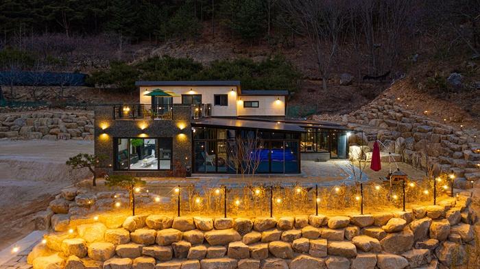 Inomhusutrymmet är cirka 15 pyeong i storlek och består av 1 rum, 1 badrum och ett kök och vardagsrum. Det finns en bred däck som används för golv, och ett matbord finns också på däcket separat från inomhusmatbordet, så att du kan använda det bekvämt när du använder grillen. Det finns dalar och berg som omger byggnadens framsida, så du kan njuta av landskapet och ljudet av vatten och fåglar. Du kan njuta av att andas frisk luft. Den oasfalterade vägen till ingången till Samdobong, som ligger cirka 20 minuters promenad från detta bed and breakfast, är bra för en promenad. * Endast ett team kan använda den exklusivt. * Det är det bästa utrymmet för läkning, så vi arbetar hårt för att upprätthålla renlighet.