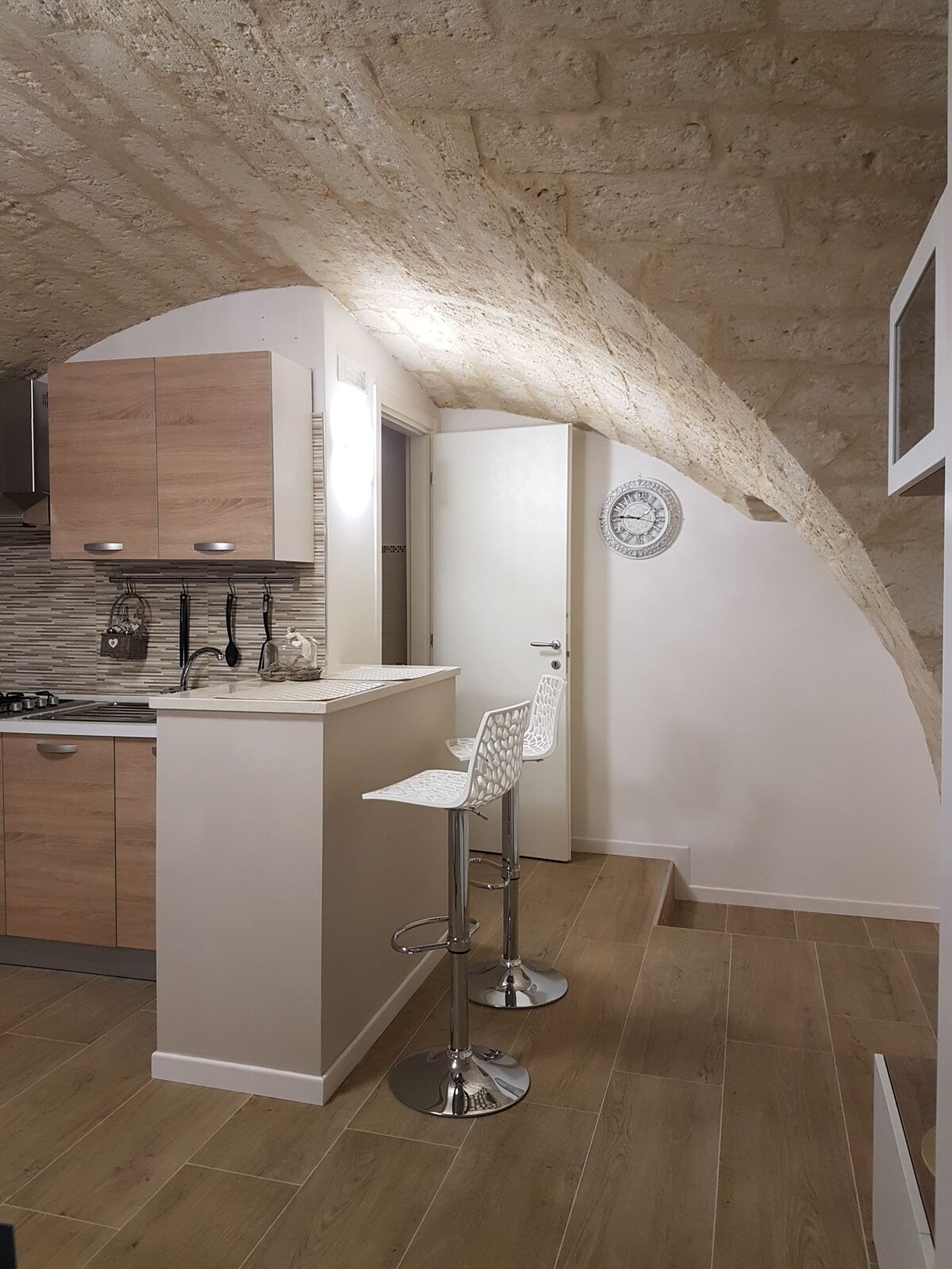 En mysig stenstudio med ett sovrum och ett fullt utrustat kök, nära havet. Lugn och avkopplande plats ,gångavstånd från det pittoreska historiska centrumet, lokala restauranger, barer, butiker och marknad. Det ligger i en historisk byggnad, ett gammalt kloster där Saint Francesco D'Assisi sov under sin vistelse i Bari. Vänliga och hjälpsamma grannar,perfekt för en familj eller grupp vänner upp till 4 personer eller par. Gratis wifi,fri parkering. Cyklar tillgängliga på begäran.