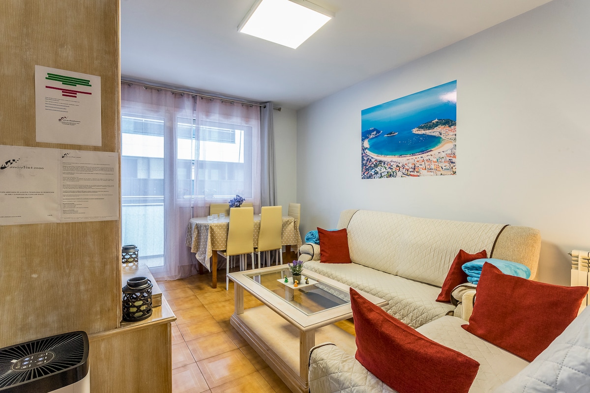En av de bästa lägenheterna i stan. Mycket bra läge, nära stränderna, restaurangerna, shoppingområdet, i stadens hjärta. Jag älskar att visa dig vår kultur och erbjuda att hjälpa dig: restaurangens förslag och bokningar, taxibilar, vinprovning, pintxos rundtur, uthyrning/lektioner i surfbrädor... Du kan använda hela lägenheten och terrassen. Ett mycket lugnt ställe. Ett bra alternativ för att upptäcka staden och ha en avkopplande tid precis i centrum.