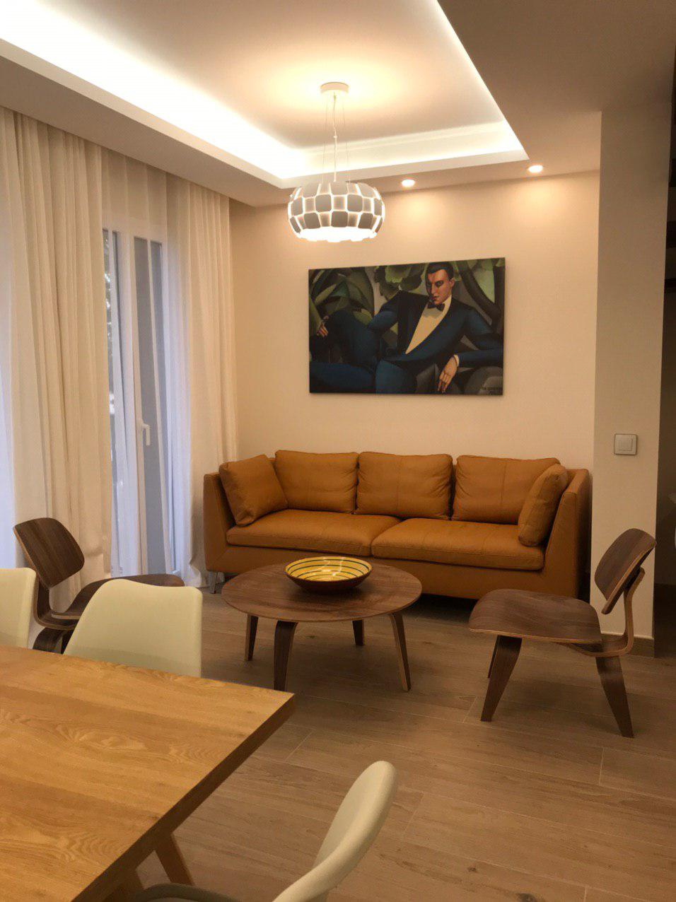 Ljus design modern tvåvåningslägenhet med stort vardagsrum, två sovrum och två duschrum, toaletter. Sovrummen ligger på olika våningar. På översta våningen finns en stor terrass med havsutsikt. Till havet till fots 1 min. 80 meter. Allt är nytt, nybyggt. Varmvatten och gasuppvärmning (regleras i lägenheten). Snabbt gratis internet, wi-fi, Apple-TV, Netflix. Lägenheten är utrustad med allt du behöver för en bekväm vistelse och avkoppling. Huset har bara två lägenheter.