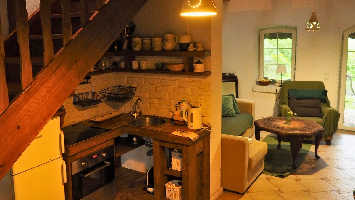 Golfistas lägenhet i Gamla Granary är en jordbruksdel av Folwark Łękuk hotel. I priset ingår boende och frukost för upp till 5 personer. Lägenheten ligger 100 meter från sjön och består av: - Sovrum för 2 personer (dubbelsäng) - ett vardagsrum med en bäddsoffa och en extra enkelsäng, en matplats och en kokvrå - stort badrum med dusch Vardagsrummet har en balkong med utsikt över parken. Pentryt är fullt utrustat (spis, ugn, kylskåp, diskmaskin, porslin).