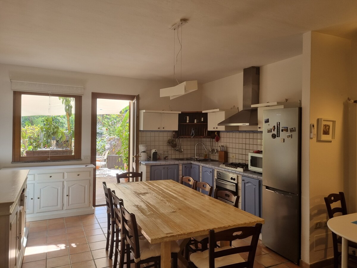 Delizioso appartamento arredato con cura, in stile etnico, provvisto di ogni comfort, in un casolare appena ristrutturato secondo i principi della bioedilizia, immerso nella macchia mediterranea del più bel versante dell'isola d'Elba, con vista mozzafiato sull'arcipelago toscano e sulla Corsica, a 250 m sul livello del mare, dominante la spiaggia di Cavoli. L'appartamento è composto di soggiorno con angolo cottura e divano-letto per due persone, camera matrimoniale e bagno con doccia e ampio spazio esterno attrezzato per pranzare e prendere il sole. Il luogo è raggiungibile con una strada sterrata di 2,5 km dal paesino di San Piero in Campo (fin dove arrivano i mezzi pubblici), distante pochi minuti di macchina dalle spiagge più incantevoli dell'isola (Cavoli, Seccheto, Fetovaia) e dal centro turistico e commerciale di Marina di Campo. E' consigliabile disporre di un mezzo proprio. La casa è immersa nella tipica macchia mediterranea alternata a grandi e suggestive scogliere di granito. Il grande giardino è recintato, contiene un orto e un uliveto. Non vi sono altre abitazioni nei dintorni. Intorno alla località si snodano i più suggestivi sentieri per gli amanti del trekking e della mountain bike. Ideale per chi è in cerca di silenzio, relax, aria pura, e ama la natura e i luoghi un pò speciali. I padroni di casa potranno aiutarvi per ogni evenienza e perplessità. BREATHTAKING VIEW ON THE ARCHIPELAGO Charming apartment,furnished in ethnic style,with every comfort,in an old cottage just renovated according to the bioarchitecture,amidst the Mediterranean bush in the most beautiful part of Elba island with breathtaking views on the Tuscan archipelago and (email hidden) a.s.l.,overlooking famous Cavoli beach. The apartment has a living room with kitchenette and divan bed for two persons,a double bedroom and a bathroom with shower and a large outside patio for eating and sunbathing. You can reach the place through a 2,5 Km dirt road from San Piero in Campo,where pubblic transport ends,and from where ,in few minutes by car you can get to the best beaches of the island (Cavoli,Seccheto,Fetovaia etc.),and to the touristic and service centre of Marina di Campo. It's better to have your own car or motorbike(you can rent it anywhere on the island). The house is surrounded by the typical mediterranean bush scattered with huge granite cliffs. The large garden has an olive grove and a vegetable garden. The place is secluded and there are no other houses in the surroundings. It's an ideal place for trekking and mountain biking and lovers of relax,peace,nature and special places. Your host are ready to help for any need and request.