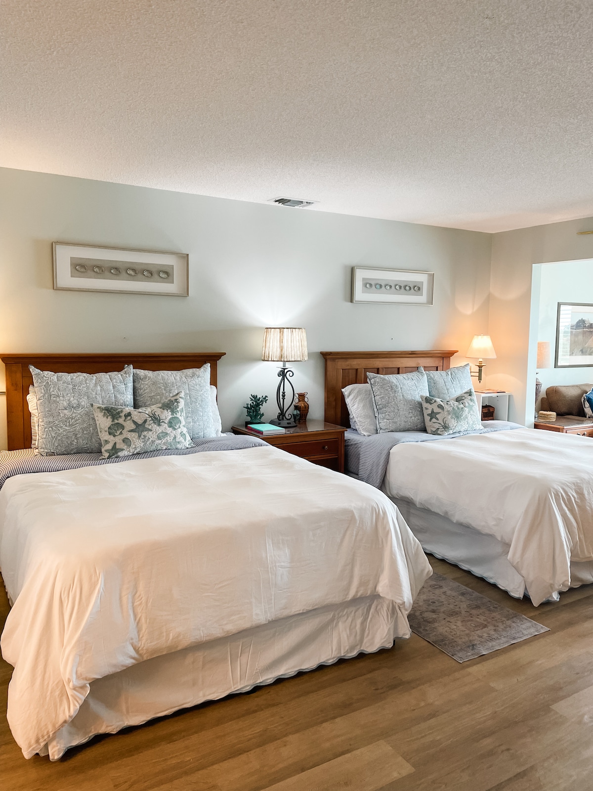 This beautiful island retreat has 2 bedrooms, 1 bathroom, and is two blocks to the beach. The master bedroom has a queen bed and the second bedroom offers 2 twin beds. This duplex is located in the middle of the island, is two blocks to the beach and a couple restaurant options. In addition, area attractions including golf, putt putt, tennis, and dining are a short drive away.