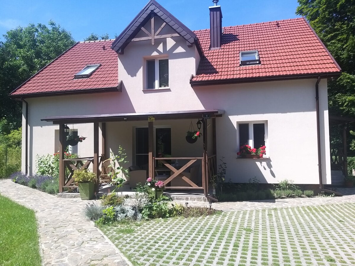 Välkommen till det vänliga hemmet. Vi erbjuder en uthyrning av hela fastigheten som ligger i ett pittoreskt område, varifrån havet ligger bara ett steg bort. Vårt hem och vackra trädgård är en idyllisk plats. Både barn och vuxna kommer att vila här. Vår huvudidé är att ge gäster maximal frihet och komfort i aura av landsbygdens lugn. För dem som är törstiga efter aktiv rekreation kommer det att finnas säkra cykelvägar, men också vildheten i kustnaturen.