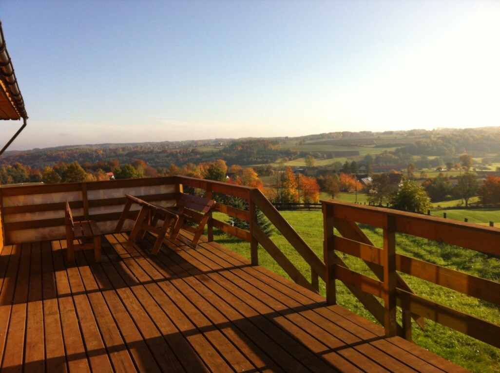 Jag hyr ett bekvämt, bekvämt hus som ligger på en kulle med en stor skogstomt, omgiven av skog och en vacker utsikt över det omgivande området. Omgiven av naturen kan du koppla av och ladda batterierna. Det finns en stor tomt, en trädgård med en damm , en kolgrill, en stor bakgård lämplig för fysisk aktivitet med 3 parkeringsplatser. Hela är inhägnad , säker. Grannskapet är rikt på sjöar och skogar, cirka 25 kilometer från Tri-City och vackra kuststränder.