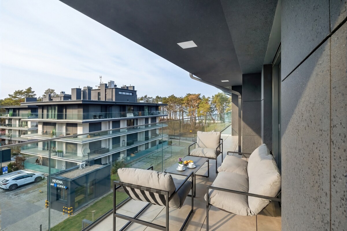 Witamy! I vår tre-rumslägenhet (52 kvm) hittar du den komfort du behöver för att koppla av: högkvalitativ inredning, två stora balkonger med utsikt över havet, fri tillgång till spa-området med pool, bastu, gym och inomhuslekplats samt en TG-parkering. Och tillgång till stranden finns precis utanför dörren! Njut av stränderna, shopping och restauranger och fritidsaktiviteter i den idylliska staden Rewal.