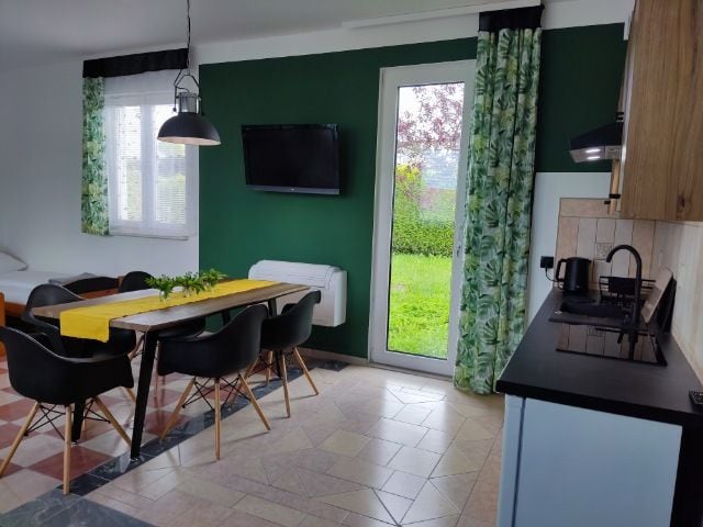 Grandpa's Poletko är en intim stugor vid havet, perfekt för en lugn tillflyktsort omgiven av naturen. Mysig inredning, massor av grönska, hängmattor, eldstad och närhet till stranden skapar idealiska förhållanden för familjer, par och de som vill ha tystnad. Systrar springer med hjärta och uppmärksamhet för detaljer. Vi ser fram emot ditt besök!