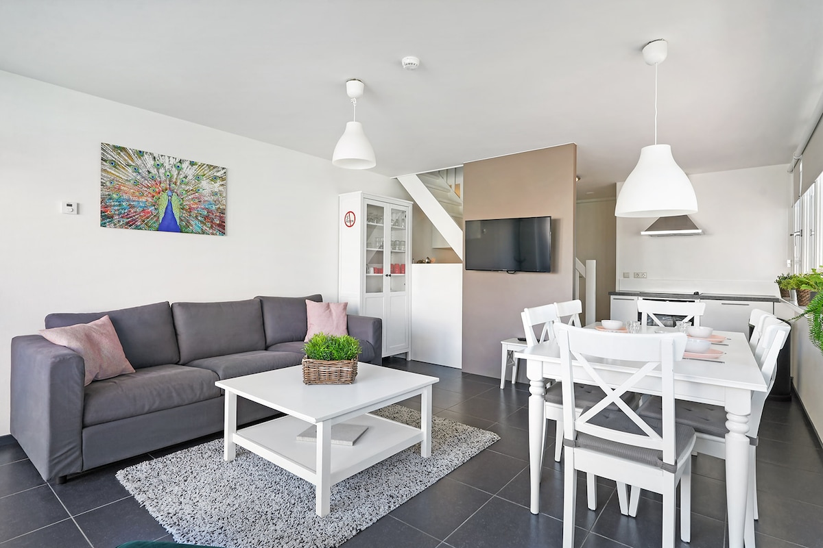 Short Stay! This 4-pers. apartment on the 1st floor with unique harbor view is located within walking distance of the beach in holiday park Cape Helius. The beach is in a 2 minute walking distance from the apartment. The completely newly furnished Luxury Apartment has a very spacious living room with adjoining open kitchen with all desirable amenities, such as refrigerator (with freezer), oven, gas stove, microwave, dishwasher, coffee maker, kettle and more.