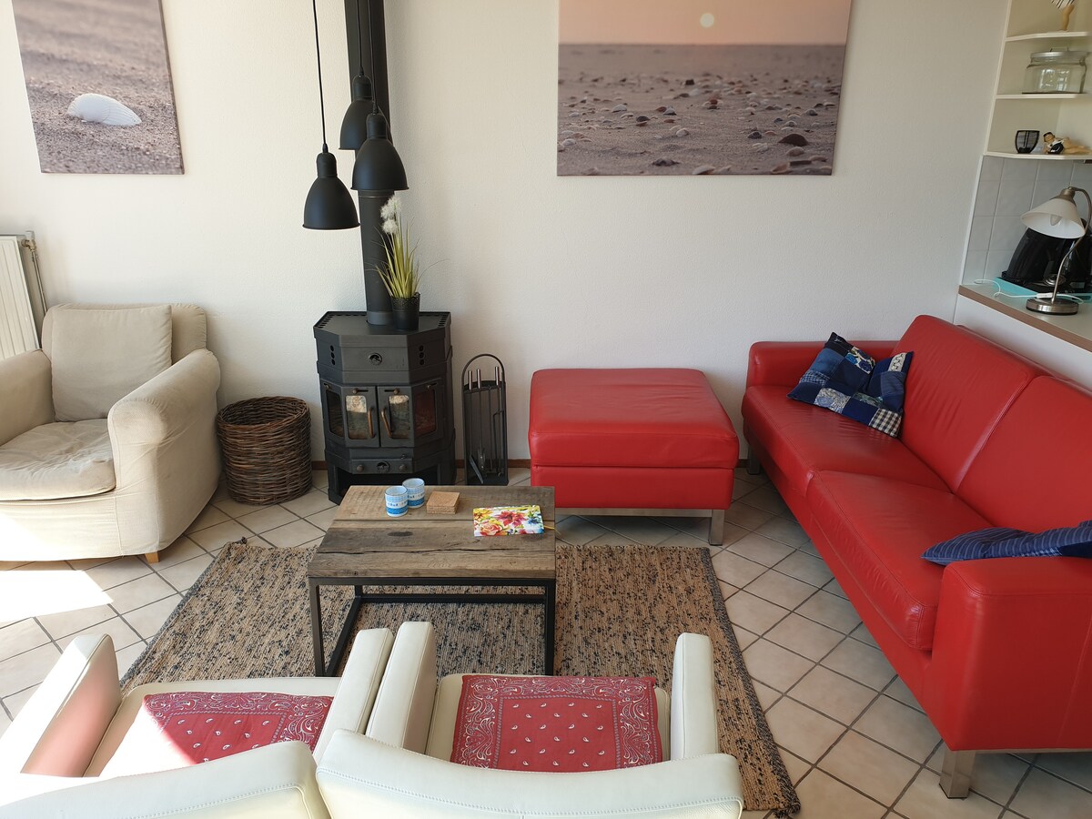 Denna lägenhet erbjuder mycket avskildhet med egen skyddad trädgård och ingång. På nedervåningen finns ett mysigt vardagsrum med öppet kök och de franska dörrarna ger gott om ljus och utrymme. Utöver golvvärme finns en mysig vedspis. Genom en öppen trappa kommer du in i sovutrymmet, där det finns 1 rymlig dubbelsäng och 2 enkelsängar, delvis skärmad av väggar. För att ta med din hund debiterar vi 15 euro kontant vid ankomsten. Alla utrymmen är färdiga med eleganta naturmaterial. Hela golvet har golvvärme. Det mysiga vardagsrummet har soffa, vedspis och TV med Netflix ( ingen TV-anslutning). Köket är delvis åtskild av trädstammen köksbord och bänkskiva i granit. Köket erbjuder möjlighet att laga mat med retro Smeg-apparater och är utrustat med gasspis, kylskåp, diskmaskin, kombinerad mikrovågsugn och vattenkokare. Badrummet utstrålar en sydlig atmosfär med ett golv av stenar och flodstenstvättskål. Det finns en tvättmaskin och dammsugare i den slutna tvättstugan. Det finns ett separat toalettutrymme. Sovloftet är uppdelat i två delar, med den lyxiga dubbelsängen på ena sidan av väggen och de två separata enkelsängarna på den andra. Utrymmet med trägolv och sängar känns omedelbart avslappnat. Lägenheten ligger inom gångavstånd från gamla stan, där det finns ett mysigt bycentrum med butiker. Med cykel kan du nå stranden inom 10 minuter. Lägenheten är helt nybyggd och mysig och mycket ljus när det gäller atmosfär, du känner dig snabbt som hemma. Du kan laga mat själv fullt ut, om du vill. När du väl går in får du en semesterkänsla, eftersom inredningen är en avslappnad strandstil. Finishen är mycket lyxig. Gäster i lägenheten får delta i yogaklasserna i Yogastudio Ouddorp till halv pris. Studiolägenheten ligger i anslutning till lägenheten. Gäster har sin egen privata trädgård, som är helt skyddad av ett staket. I trädgården finns en mysig sittgrupp, avkopplande stolar och stort picknickbord. Min pojkvän och jag är tillgängliga via e-post, whats app och telefon. Den pittoreska Ouddorp är en liten badort vid havet med ett mysigt centrum och en sandstrand på inte mindre än 17 kilometer lång. Naturen är vacker och omgivningarna är idealiska för surfing, cykling och vandring. Centrum ligger bokstavligen inom gångavstånd. Ett utsökt riktigt bageri ligger runt hörnet. Stormarknaderna ligger också mycket nära. Runt kyrkan finns mysiga affärer och terrasser. Stranden är bred och härlig med några coola strandklubbar. Busshållplatsen ligger i anslutning till trädgården. Parkering är gratis på Stationsweg, precis intill lägenheten.