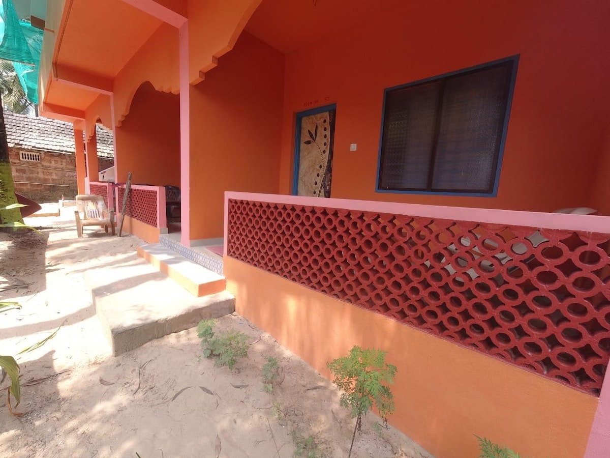 Single bed room Ocean facing house offering a jaw dropping view of the sea with the cleanest & peacefull shore, also experiencing gentle breeze between the coconut palms . There's more to experience by staying at Vedic beach farm. BASIC INFO - Main road - 200Mtr super market - 500Mtr City center 5km Railway station 5km Nirvana beach 2km . Ferry junction 3Km Gokarna 30 min drive Cafes and restaurants within 5 min of reach. safety and hygine maintained.
