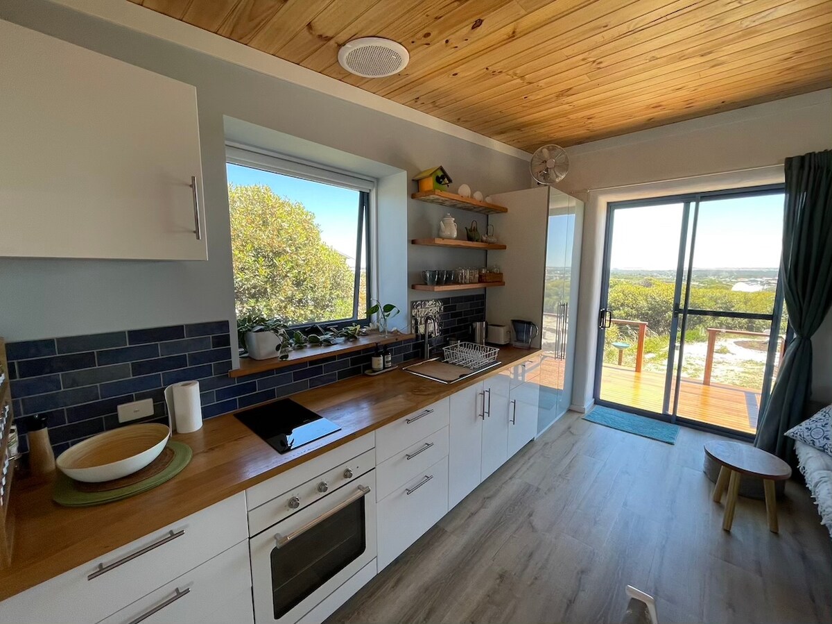 Mitt hus har härlig utsikt över Dempster Head Rock och de fantastiska koboltvattnen i West Beach. Vår gata är lugn, precis uppför kullen från CBD, borta från butiker. Din enhet är helt separat med stort sovrum i strandstil, havsutsikt och vit kaklad stor foajé som leder till ett pentry/tvättstuga, sedan separat badrum och inhägnad uteplats med klädstreck och grill. Om du gillar total integritet kommer du inte att störas, eller om du vill träffa mig kommer jag att njuta av att dela med mig av min lokala kunskap.