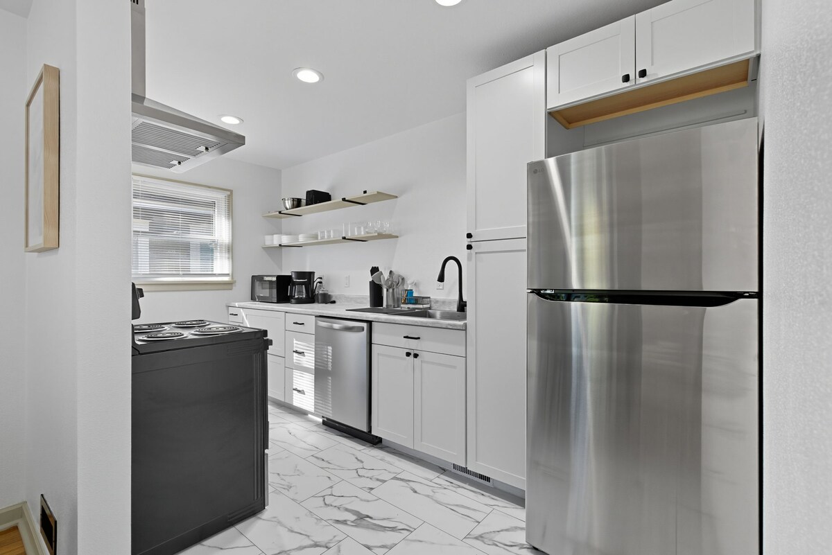 1-säng, 1-bad fullt uppdaterat boende med plats för fyra sovplatser. Gratis parkering på plats, tvättmaskin/torktumlare, luftkonditionering, dubbelsäng. Nära restauranger, kaféer, parker (inklusive Manito Park), Trader Joes och centrala Spokane. Rökning förbjuden. 10 minuters bilväg till Gonzaga campus. Nära Sacred Heart Hospital, Children 's Hospital och Deaconess Hospital. Köket är utrustat med grytor, pans och matlagningsgrunder. Keurig kaffebryggare, fullt kylskåp/frys, Smart-TV med prenumerationer på Netflix, Disney+ och Amazon Prime.d