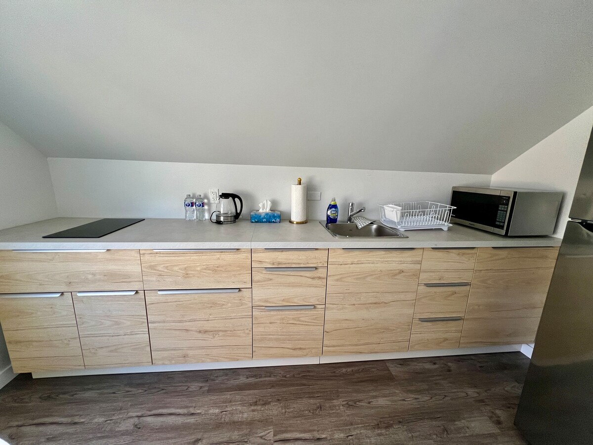 Privat svit på en andra våning av ett hus, med dubbelsäng. Nyckellöst elektronisk lås Du har badrum, kök, vardagsrum och sovrum för dig själv Det finns schampo och kropp tvätta så att du kan använda i badrummet. Köket innehåller föremål som kylskåp, kokplatta(inget sortiment), kaffebryggare, vattenkokare, mikrovave och toas i köket. Busshållplats ligger nära huset (1 min promenad) 4 minuters bilväg till Parkland köpcentrum. Det finns mataffär, spritbutik, Starbucks, Restaurang, gym, ect i det området.