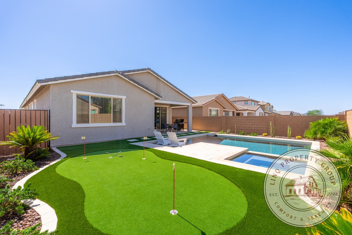 Stay at our home in a beautiful & quiet neighborhood near shopping and venues with a PRIVATE HEATED POOL ALL YEAR. Perfect for families and baby friendly. Less than 2 miles to the Stadiums, Westgate Entertainment/Casino, golf courses, Mattel Adventure Park, Pop Stroke and MLB Spring Training. 20 mins to airport 1.5 hours to Sedona and 3.5 hours to Grand Canyon. We can accommodate 7 people with 3 BRs and 2 baths. The backyard is private, set up with patio furniture, TV, a grill and yard games.