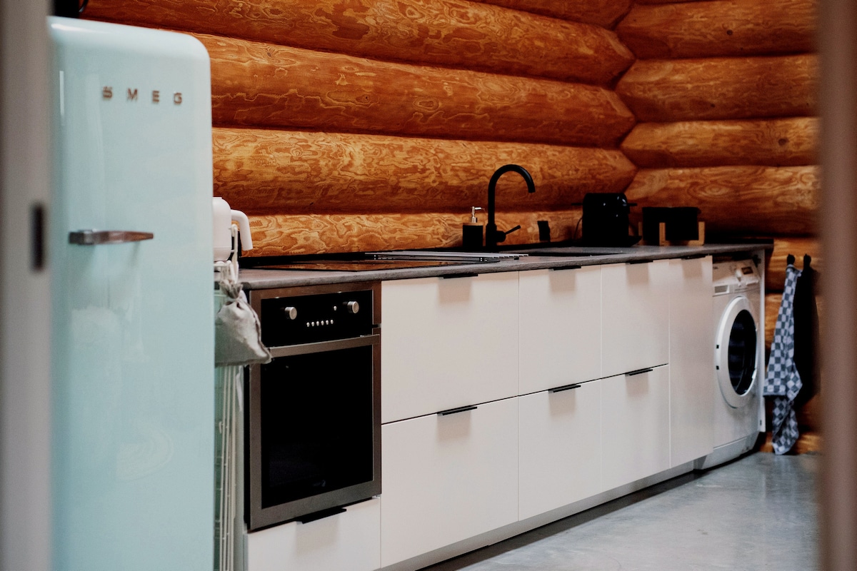 Skandinavisk timmerhydda – Tillverkad av äkta trädstammar