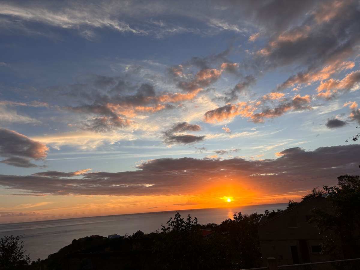 I hjärtat av Grenada Marie Pierre och Gérard kommer att vara glada att välkomna dig till deras villa, med 2 sovrum, 1 vardagsrum, 1 badrum, 1 kök, 1 tvättmaskin, 1 diskmaskin, torktumlare, WiFi-anslutning och en stor terrass med en fantastisk utsikt över havet, på en lugn och trevlig plats. Boendet ligger nära flera turistattraktioner såsom: Botaniska trädgården 10 min, djurparken 15 min, och 20 minuter från Cousteau-reservatet.