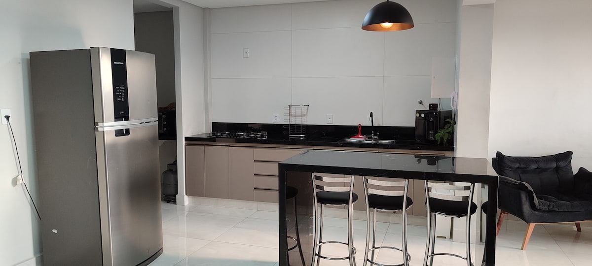 Upptäck din perfekta semester i vårt fantastiska loft! Detta moderna, mysiga boende är perfekt för par, ensamresenärer eller upp till 04 vänner. - Espaço Aconchegante: Loft slutfört. Vad som ingår: - Kök komplett: Utrustat med redskap, spisar och kylskåp för att förbereda dina måltider. - Gratis Wi-Fi: - SMART-TV MED APPAR - Luftkonditionering. Sänglinne och handdukar. - Gratis parkering tillgänglig. - 1 enkelsäng och 1 dubbelsäng - 1 enslig madrass