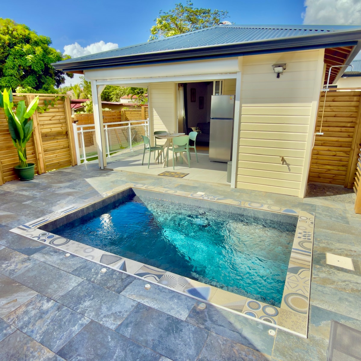 Denna 40 m² stora lyxiga bungalow ligger i Petit-Bourg och är en sann kokong av komfort och lugn. Dess trädesign och varma inredning skapar en mysig och elegant atmosfär. Det har en dubbelsäng, bäddsoffa, utrustat kök och modernt badrum. Terrassen öppnar upp till en vacker pool med balneoterapi, perfekt för avkoppling som ett par, eller med din lilla familj. Privat parkering, wifi och perfekt läge mellan Grande-Terre och Basse-Terre.