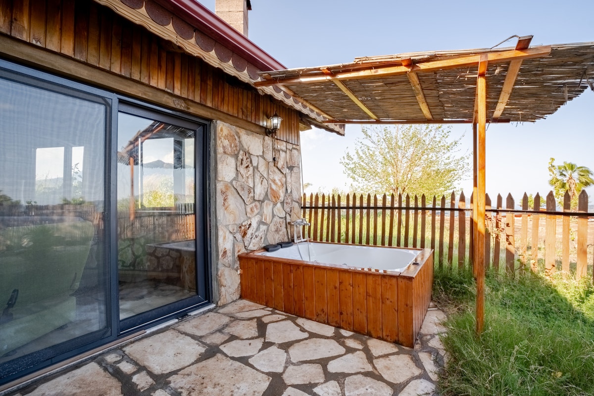 Olympos 3850 m² trädgård. Utomhus naturlig sten jacuzzi
