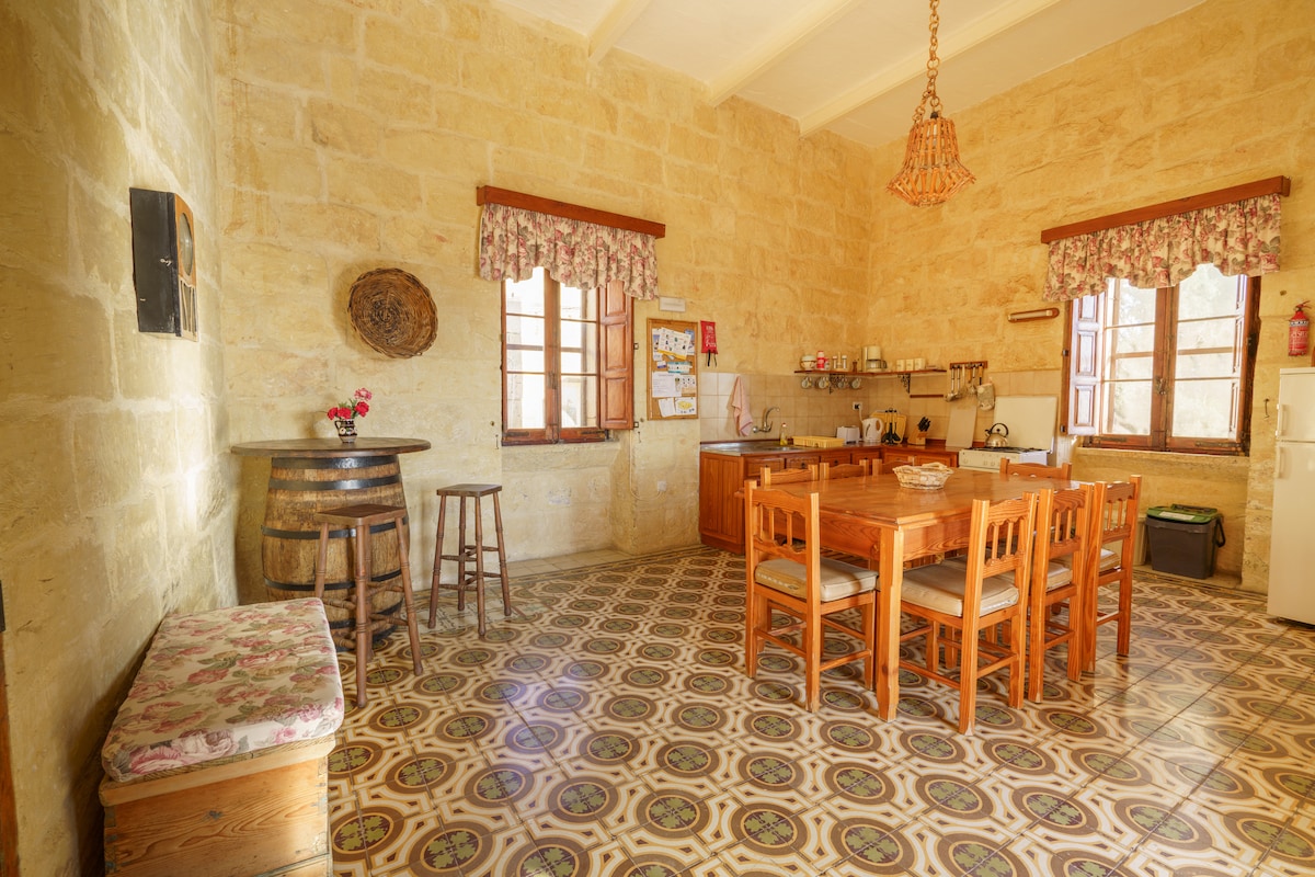 Fristående 400 år gammal autentisk gozitansk bondgård/villa Estate (5 000 kvm), nyligen renoverad till hög standard. Det ligger på förhöjda grunder och ger full utsikt över Wied il-Ghasri-dalen/stranden, Ta Giordan Lighthouse, ett gammalt kapell och havet. Boendet har privat uppfart/bilport. Området erbjuder fullständig lugn och fantastisk utsikt. Frikycklingar, tuppar, alpackor, get, vänliga katter, 2 påfåglar, 2 röda vingade macaw och 2 apor kommer att hålla dig sällskap!