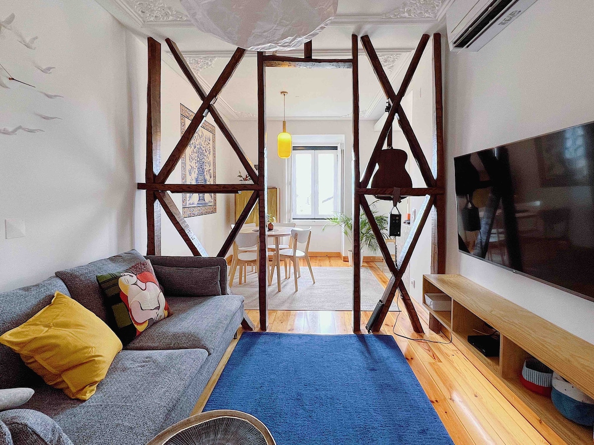 Nyligen ombyggd i juni 2023! Denna konstfyllda, bekväma lägenhet med ett sovrum ligger i det bästa området för att besöka Lissabon. Grannskapet är livligt med restauranger och barer. Vänligen boka oss inte om du är alltför känslig för buller. Alltför ofta älskar gäster vårt ställe men ger oss 4* omdömen på grund av buller eftersom det inte är rättvist för oss. Bredvid Time Out Market och bara några minuter från floden, Pink Street och Pensão Amor, Praça do Comércio och Baixa Ciado.