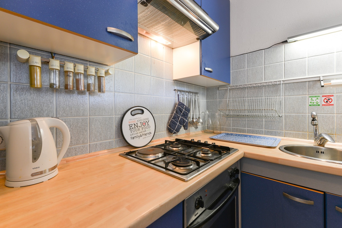 Luta dig tillbaka och koppla av i denna lugna, eleganta studio. Mysigt sovrum/vardagsrum med eget badrum, fullt utrustat kök, luftkonditionering och en söt uteplats. Gratis wifi och parkering. Delad grill. Toppläge! En vacker strand ligger bara 2 minuters promenad bort. Nära en marknad, bageri, glassbutik, restauranger och barer. Gamla stan Zadar ligger bara 5 km bort. (Busshållplats 50 m).