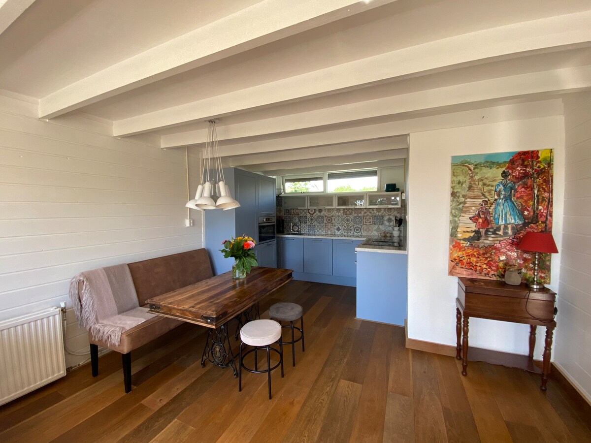 En fristående bungalow på ett lugnt ställe. Från bungalowen kan du cykla till stranden Bergen aan Zee, konstbyn Bergen eller till staden Alkmaar. Framför bungalowen finns en fin trädgård med veranda där du kan sitta i solen på sommaren. Inuti finns ett rymligt badrum, fullt utrustat kök, golvvärme och luftkonditionering. Alla är välkomna, unga och gamla! Men observera: huset är inte tillgängligt för fester, hög musik etc. mycket bra anslutning till A9