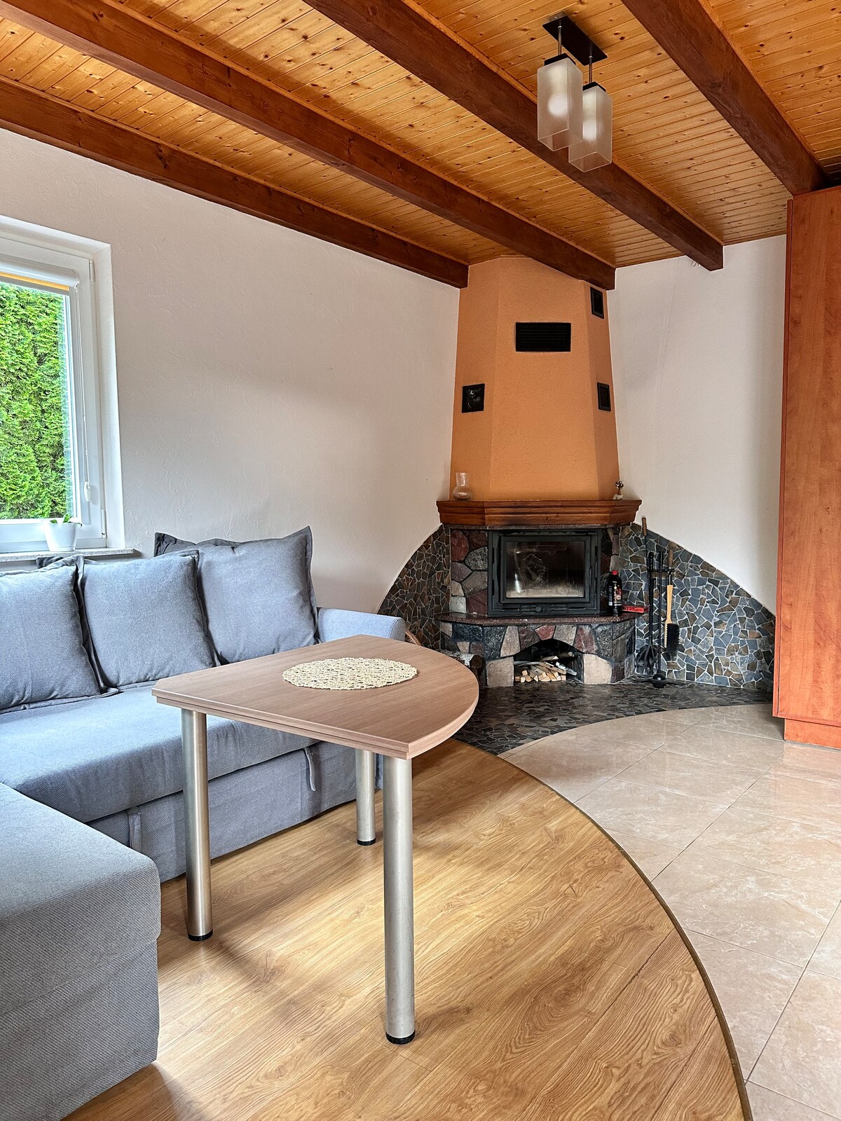 Vårt hus ligger i kanten av skogen, nära sjön Jagodne. Det är en uppgraderad del av en gammal bondgård. Den är byggd av preussisk tegel och har fortfarande behållit sin ursprungliga karaktär och enkelhet på landsbygden. Det är den perfekta tillflyktsorten för människor som vill komma bort från stadens liv och rörelse.