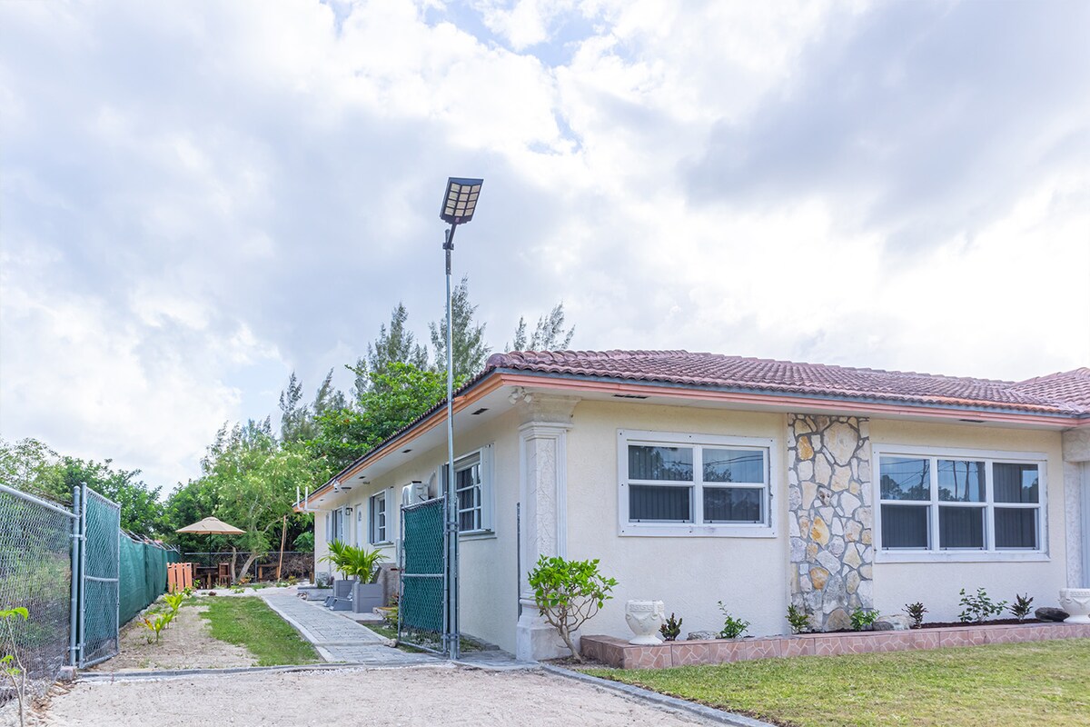 Välkommen till din avskilda trädgårdsoas i Freeport. Detta boende med 3 sovrum ligger undangömt i Lucaya – bara 3 minuters bilresa till Williams Town Beach och under 7 minuter till Port Lucayas butiker, restauranger och nattliv. Du är också nära en sällan tillgänglig attraktion på en privat egendom. Njut av total integritet, frodiga tropiska omgivningar och alla bekvämligheter som ett hem ska ha – perfekt för att koppla av efter en dags utforskning av Grand Bahama.