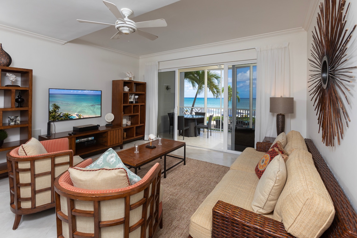 Bara några steg från sanden är denna strandlägenhet perfekt för en romantisk semester, en solo-reset eller en liten familjesemester vid havet. Njut av direkt tillgång till stranden, en glittrande pool och barnpool, utomhusgrillplats och luftiga verandor som är perfekta för morgonkaffe eller avkoppling i solnedgången.Inuti hittar du ett lugnt sovrum med king size-säng, en rymlig sektion för avkoppling och ett fullt utrustat kök för enkel boende på ön.Upplev Cayman som det är tänkt att vara – lugnt, enkelt och vid vattnet!