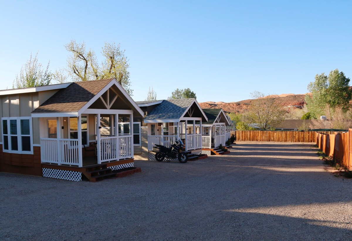 Fly hotellets liv och rörelse – njut av lyxen i din egen privata stuga! Renlighet är vår främsta prioritet och erbjuder dig ett orört utrymme under din vistelse i Moab. Njut av mysiga sängar, fräscha sängkläder och alla bekvämligheter för ditt ökenäventyr. För komfort och överkomliga priser väntar ditt perfekta boende hos oss! Gå med i vår community av återkommande gäster och utforska våra varaktigt positiva omdömen! Vi ber dig att läsa vår annonsbeskrivning när du bokar, (OBSERVERA LOFTETS TAKHÖJD).