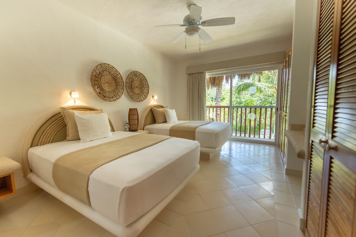 Välkommen hem ! Njut av denna helt nya lägenhet belägen på Grand Sirenis Residential bara 7 km från den vackra stranden i Akumal Bay ! Du kommer att få privat användning av hela lägenheten med en stor säng och en dubbelsäng , två privata badrum anslutna till varje sovrum , vardagsrum med en bekväm soffa som rymmer en extra person , fullt utrustat kök och en terrass med utemöbler för att njuta av dina måltider medan du lyssnar på djungelns melodier! Allt för att du ska känna dig som hemma!