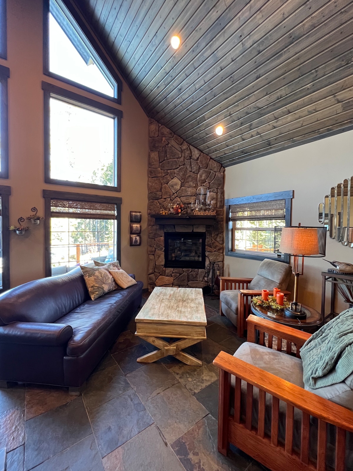 The Chalet is the perfect accommodation to enjoy everything the Philipsburg area has to offer! The house offers large windows in the main rooms of the home, allowing for ample light to enjoy the mountains. There are three bedrooms (one with a queen bed, one with a bunk bed that is a single over full, and a third with two single beds,) that provide privacy for a multiple family party. The house is a mere two minute walk down to the main street of Philipsburg.