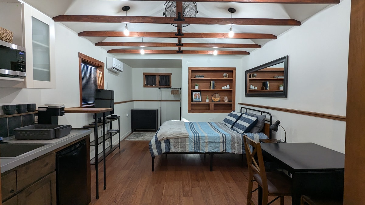 Välkommen till vår charmiga tillflyktsort mitt i Prescott! Denna mysiga stuga erbjuder den perfekta blandningen av värme och modern stil, vilket ger en idealisk flykt för dem som söker både lugn och äventyr. Beläget bara några minuter från centrum kommer du att ha enkel tillgång till vandringsleder, sjöar och den livliga lokala kulturen. Oavsett om du utforskar den historiska Whiskey Row, njuter av naturen eller helt enkelt kopplar av på däck med en kopp kaffe är denna stuga den perfekta basen för din semester.