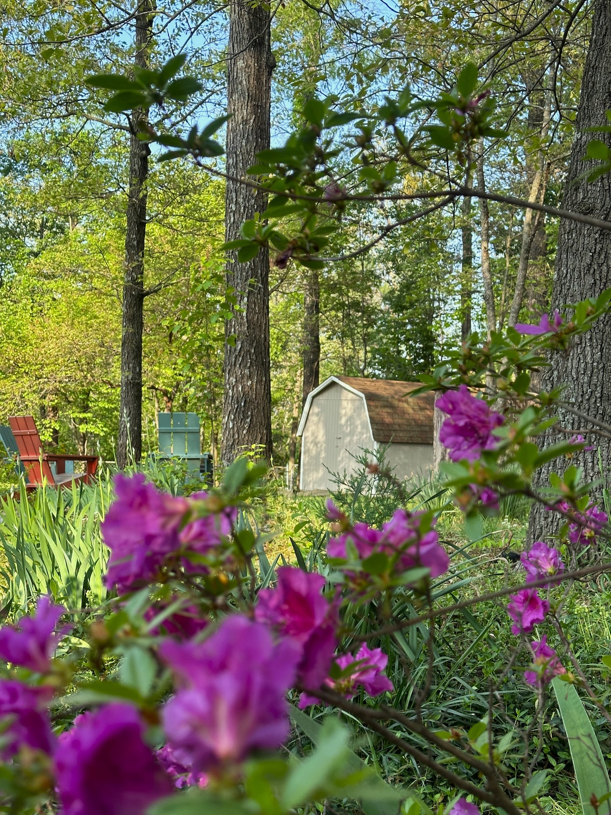 Our property is one of a kind! Every photo that you see is in our backyard. If you’re looking for peace and quiet or some killer shredding, this is the place! We have a custom connector trail from the Airbnb entrance to the highly anticipated Little Sugar trail system. You will have a private room with no access to the house. It is totally secluded. We back up to Tanyard Creek Trail and waterfall which is a popular destination in Bella Vista. You will enjoy custom decor and tons of nature.