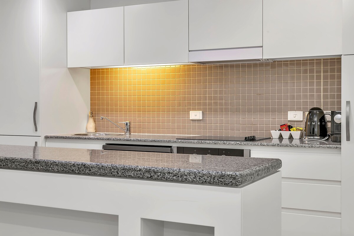 Välkommen till din urbana tillflyktsort! Vår nyrenoverade lägenhet har en modern trästil och är fullt utrustad för din komfort. Få tillgång till spa, bastu och pool, plus gratis säker parkering. Beläget bara 5 minuter från Chinatown och 10 minuter till Rundle Mall med bil, buss eller spårvagn, är det perfekt för att utforska Adelaide. Koppla av på den privata balkongen, håll kontakten med obegränsad snabb NBN och njut av bekvämligheter som kaffebryggare, smart-TV och ett fullt utrustat kök.