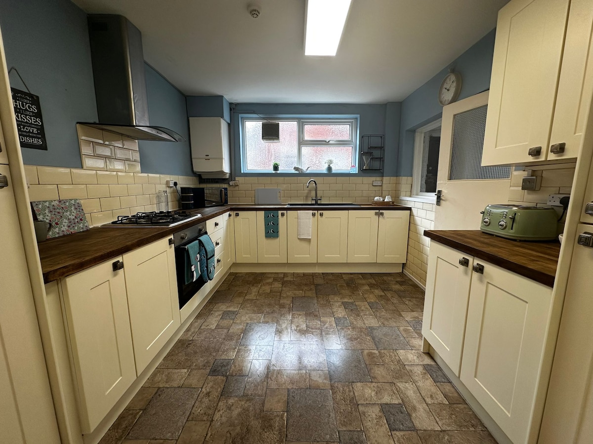 Mycket rymligt hus med 4 sovrum inom 3 minuters promenad till stranden med sin brygga joyland och havslivscentrum och nöjesstrand allt i närheten av stadens centrum är också bara en kort promenad. Det stora sovrummet har eget badrum och det finns ett familjebadrum och ett litet spelrum i källaren. Parkering är på gatutillstånd som vi tillhandahåller 1 tillstånd för gäster att använda under din vistelse.