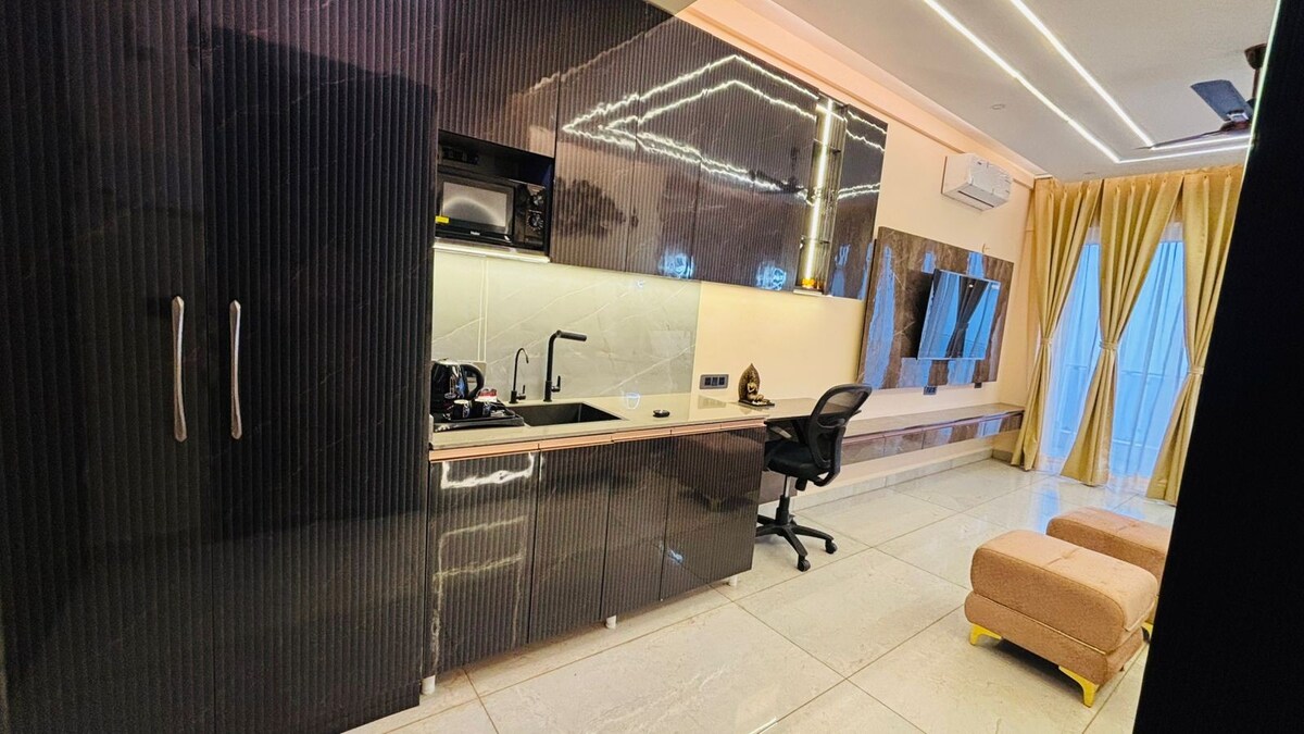 A couple friendly Private apartments, a king-sized bed, and a fully-equipped kitchen. Enjoy seamless connectivity with fast WiFi and stay entertained with our sleek smart TV with free access to OTTs. Complimentary amenities include an Electric Kettle, Microwave, Induction cooktop and toiletries - your home away from home! Daily cleaning is available and the timings are (11 AM to 6 PM) Compulsory ID proof (Adhaar/DL/Passport) required for all guests before check-in.