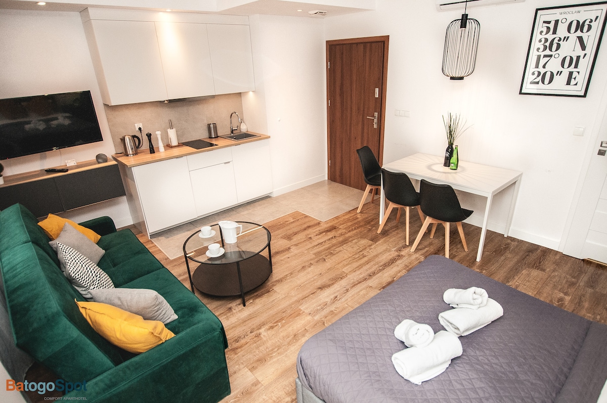 VĂ„r anlĂ€ggning ligger bara 300 m frĂ„n OstrĂłw Tumski. Vi har ytterligare betalda parkeringsplatser frĂ„n vilka du direkt kan gĂ„ till lĂ€genheten. De flesta av de största evenemangen i WrocĆaw Ă€ger rum inom 1 km frĂ„n platsen. LĂ€genheterna i vĂ„rt boende Ă€r: eleganta och bekvĂ€ma, uppfyller förvĂ€ntningarna hos de mest krĂ€vande gĂ€sterna; de Ă€r fullt utrustade, sĂ„ du kan anvĂ€nda lĂ€genheterna som om de vore din egen lĂ€genhet.