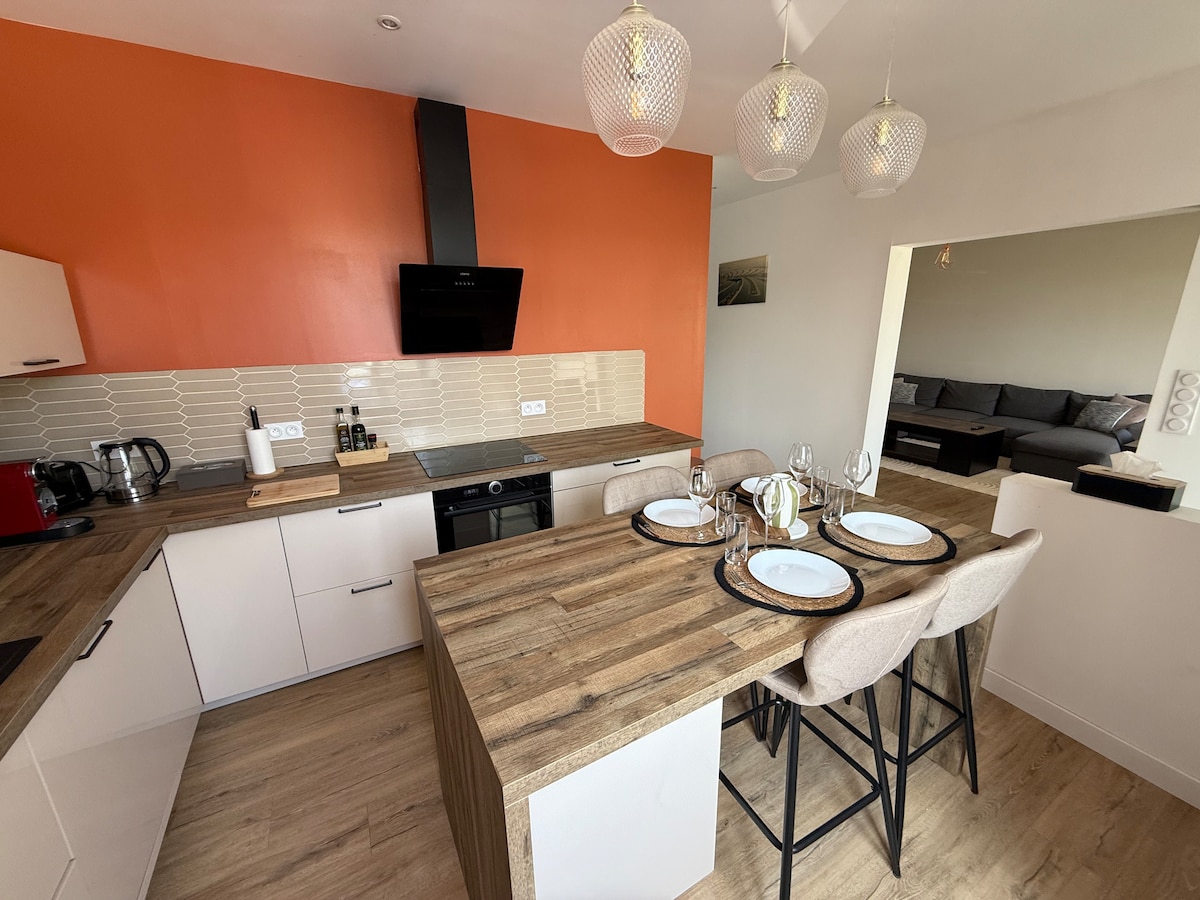Kom och tillbringa en drömnatt tillsammans med den du älskar, i detta lugna och eleganta boende på 50 m2. Vi hoppas verkligen att du kommer att gilla denna plats, nyckelorden för din vistelse kommer att vara kärlek, avkoppling och vila. För detta ändamål finns ett rum med bubbelpool och dusch. I det andra rummet kan du njuta av ett riktigt kök med vardagsrum. Vi ligger i Dole, en charmig gastronomisk och kulturell stad i Jura
