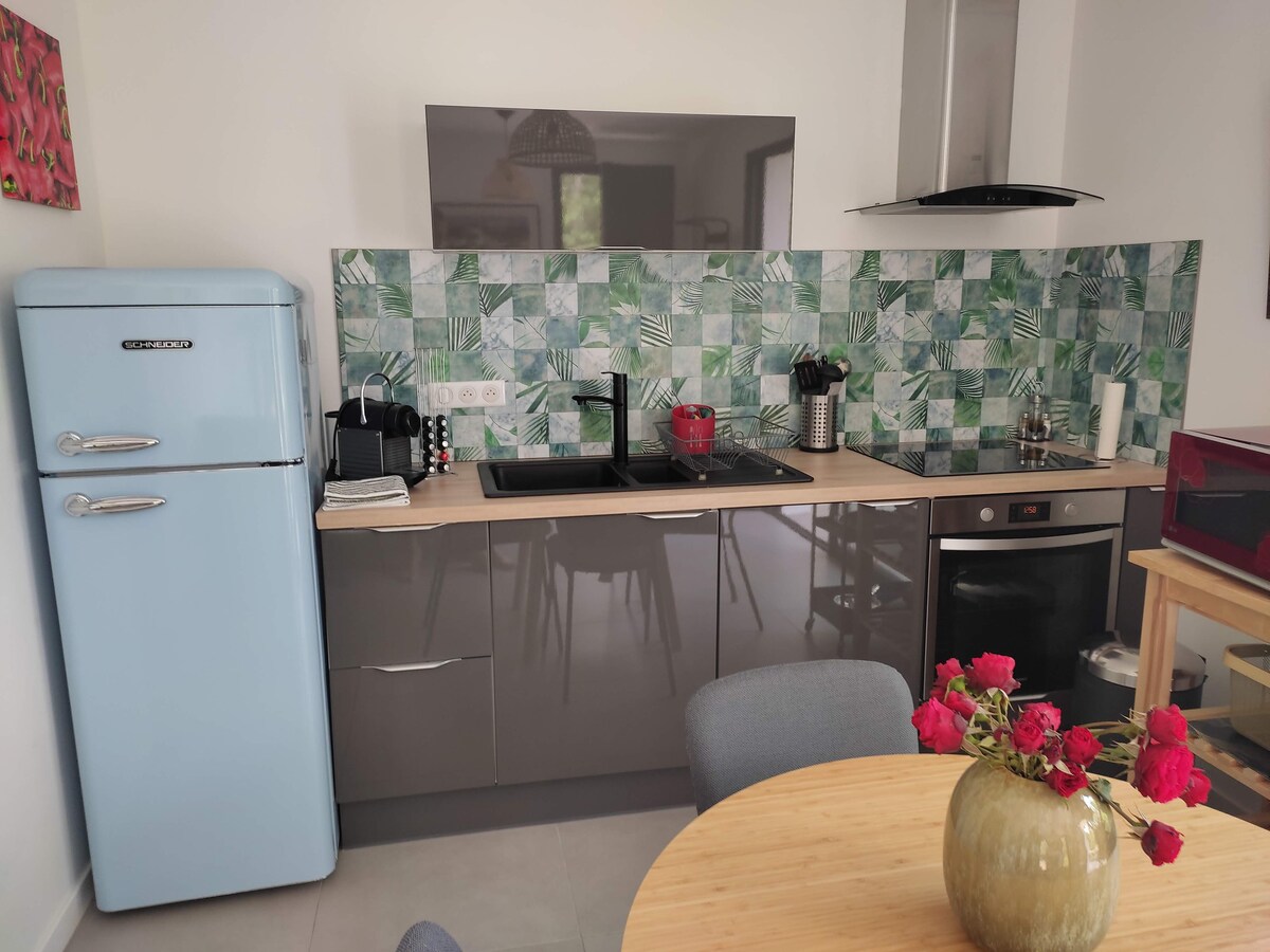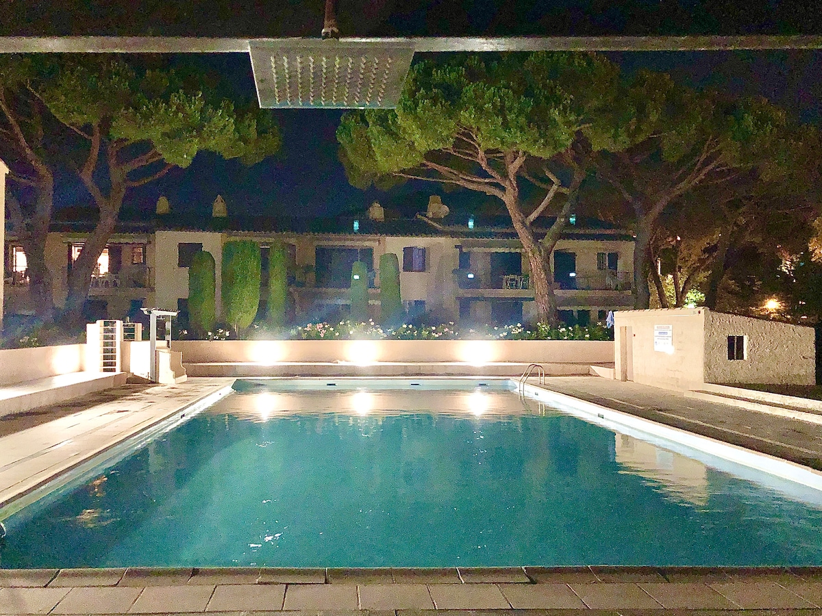 Koppla av i detta lugna, eleganta och rena boende i Saint-Tropezbukten 5 minuter från havet, 5 minuter från Grimaud, Port Grimaud och Saint-Tropez. Downtown och alla bekvämligheter i närheten. Boendet innehåller alla bekvämligheter du behöver för en trevlig vistelse. vistelse. Sovrummet innehåller en king size-säng 180 cm och en exceptionell memory-madrass 🛏😍 Privat parkeringsplats precis framför boendet.