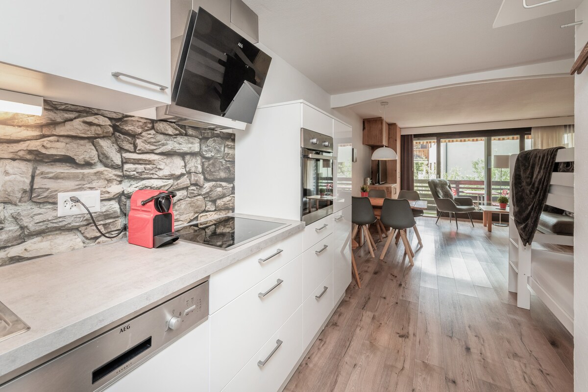 Våra 4-rums taklägenheter är inredda för max 6 personer, var och en med 3 sovrum med dubbelsängar. Ett sovrum med platt-TV. Stort vardagsrum med plattskärm och skrivbord. Modern, fullt möblerad vardagsrum-matsal med bekväm hörnbänk. Badrum med badkar, badrum med dusch. Njut av bergspanoramat på den stora, möblerade södra balkongen.